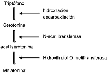 En individuos sanos la síntesis de melatonina se inicia al oscurecer, entre las 20 y las 22h.