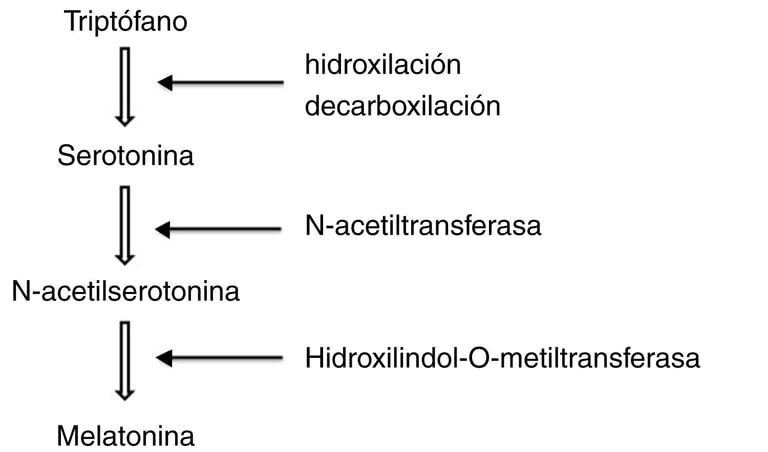 La melatonina se sintetiza a partir del triptófano, un aminoácido esencial que también es precursor de la serotonina. Consumir alimentos ricos en triptófano, como plátanos, nueces y pavo, puede favorecer su producción endógena.